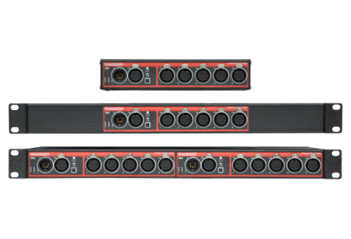 DMX-Splitter sind das Rückgrat von jeder DMX512-Installation. Die XSP Modelle bieten höchste Zuverlässigkeit im professionellen Einsatz auf Tour oder in der Installation. Das eigens entwickelte Netzteil sorgt für einen reibungslosen Betrieb auch unter erschwerten Netzbedingungen. Jeder Port ist optisch isoliert und sehr gut gegen transiente Überspannungen gesichert. Das DMX-Signal wird vom XSP regeneriert und verstärkt ohne das DMX-Protokoll-Timing zu verändern. Der XSP Splitter reduziert Reflektionsprobleme und ermöglicht das DMX-Signal auf mehrere Leitungen zu verteilen.