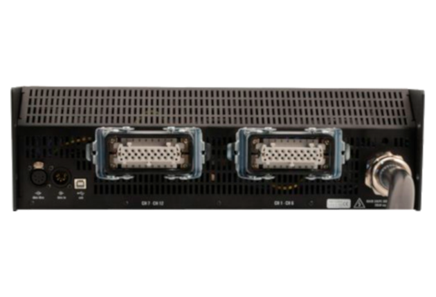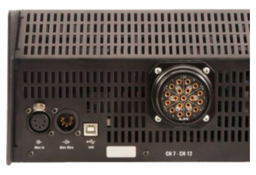 Es sind Modelle mit 12x 2.5kW und 6x 5kW erhältlich. Die 12x 2.5kW-Modelle sind mit Harting-, Socapex- oder Klemmanschluss verfügbar.Gewicht 31 kg Abmessungen (L x B x H) 482 (19") x 485 x 132 mm Umgebungstemperatur -10 bis +35°C Versorgung bis 276 V AC Frequenz Versorgung 50/60 Hz Nominalleistung 12x 2.5 kW / 6x 5 kW Max. Ausgangsstrom (RMS) 30 A Elektronische Sicherung Ja, pro Kanal Preheat Ja, pro Kanal Einstellbare max. Spannung 70-240 V Dimmerkurven 7 DMX in / through 1 / 1 DMX ANSI E1.11 -